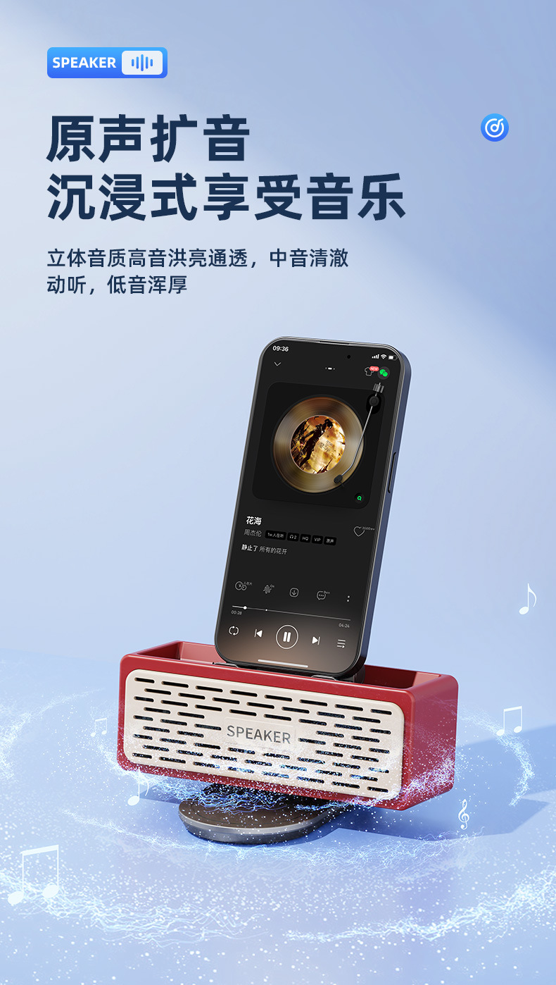手机共振音箱无需蓝牙免通电便携佩戴手机通用